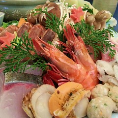 魚刺身・天ぷら・豚肉・鶏だんご・ホタテ・魚切身・海老・ 野菜・うどん・フルーツ ※カニは入っておりません。 ...