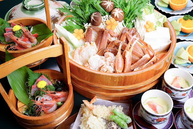 蟹鍋・茶碗蒸し・天ぷら・雑炊セット・フルーツ
