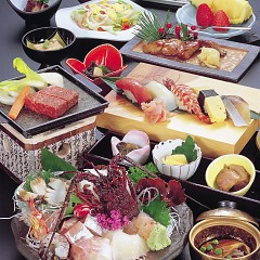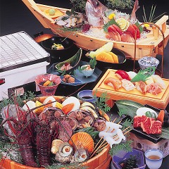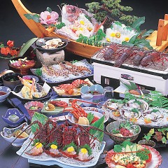 ◎お食事のプラン(夕食・昼食)各サ込・税別 デラックス 「祝」 15000円 舟盛会席 「大海原」 14000円 おまかせ会席 「月夜見」 13000円 舟盛会席 「夕波」 12000円 鮑付会席 「静波」 11000円 海老御膳 「海」 10000円 舟盛コース 「磯」 9000円(3名以上) あわび会席 「扇」 8000円(4名以上) 特選和牛会席 「松」 7000円(5名以上) 寿司会席 「和」 6000円(10名以上) ---グループお食事プラン--- 舟盛会席 『浜の風』会席 7000円 税別 (10名様以上) 舟盛会席 『磯のにぎわい』膳 8000円 税別 (8名様以上) 豪華舟盛会席 『波のきらめき』膳 9000円 税別 (6名様以上) TELにてお問い合わせくださいませ。 写真のコースは、DX(デラックス)祝 -iwai- 会席 15000円税別になります。 夕食内容:平目舟盛料理、伊勢海老料理(お造り)鮑料理(鮑ステーキ)特選和牛料理 (6月~9月は、特選和牛の石焼を!。10月~5月は、特選和牛のすき焼きを予定。) 食前酒、旬の前菜、付出し、酢の物、旬のお造り(三種盛り) 自慢のにぎり寿司、旬の焼物、旬の揚物、旬の貝料理(冬場は牡蠣に変更)、 お吸物、香物、季節の果物など、全14品。 ☆旬の食材を使用しておりますので、その日の仕入の都合により、多少異なることがございます。
